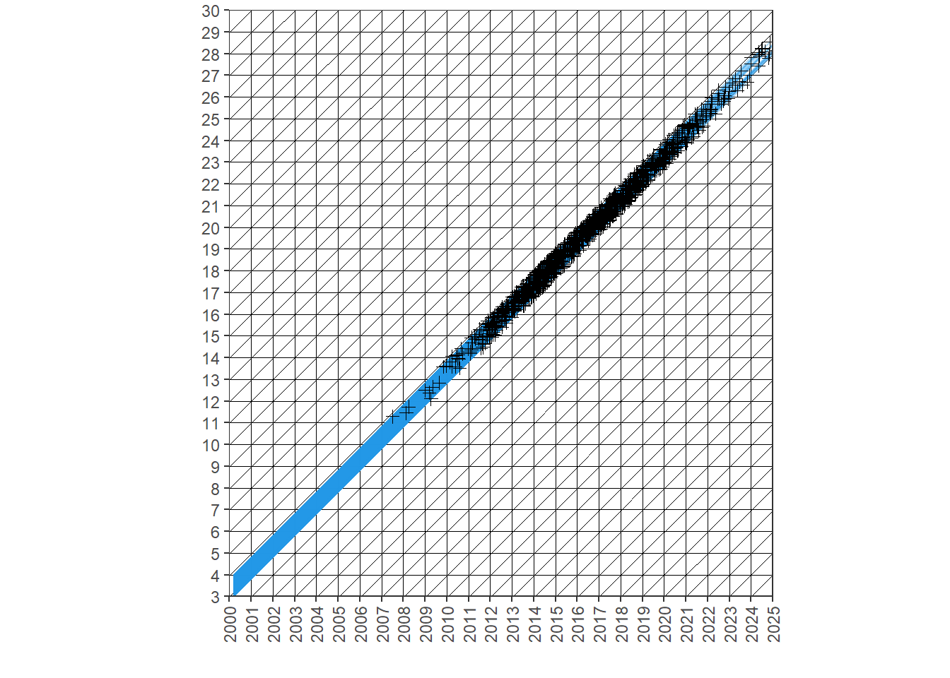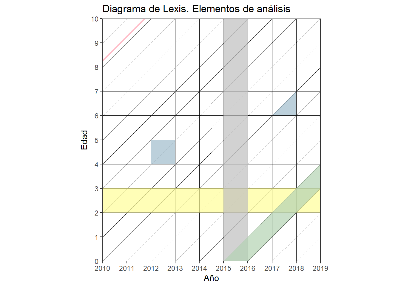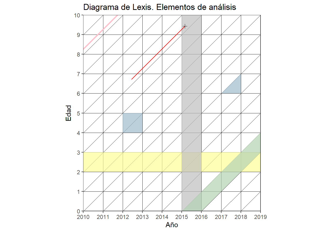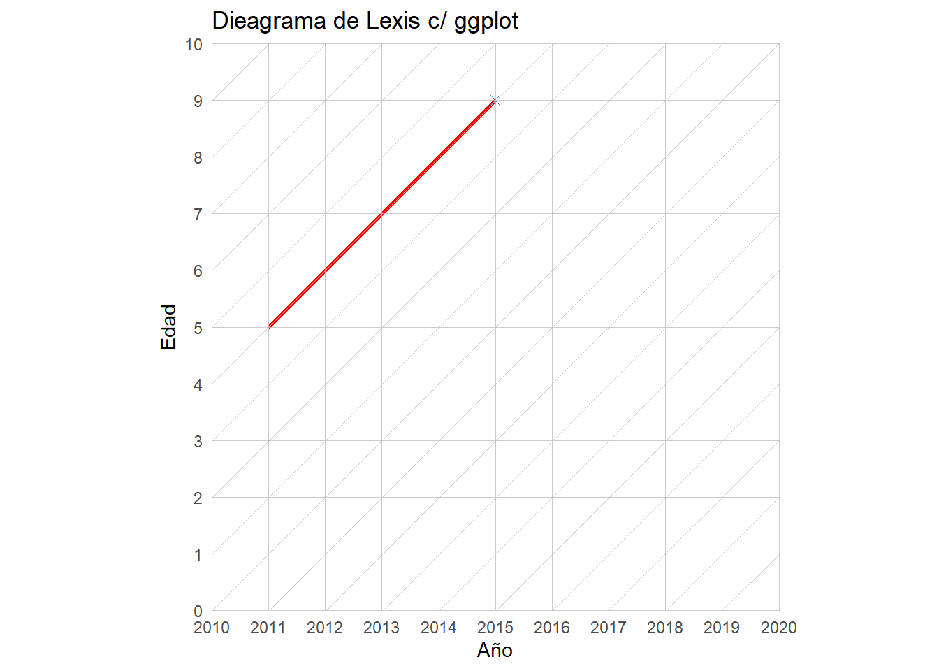 Crear un diagrama de Lexis e incluir en rojo las líneas de vida de las 3 personas más jóvenes que conozcas.