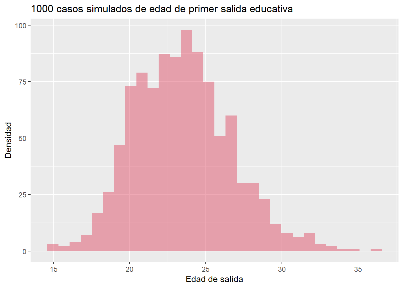clase %>% filter(edad_salida >= 20 & edad_salida < 21) %>% summarise(n()/nrow(clase))## [1] 23.4662