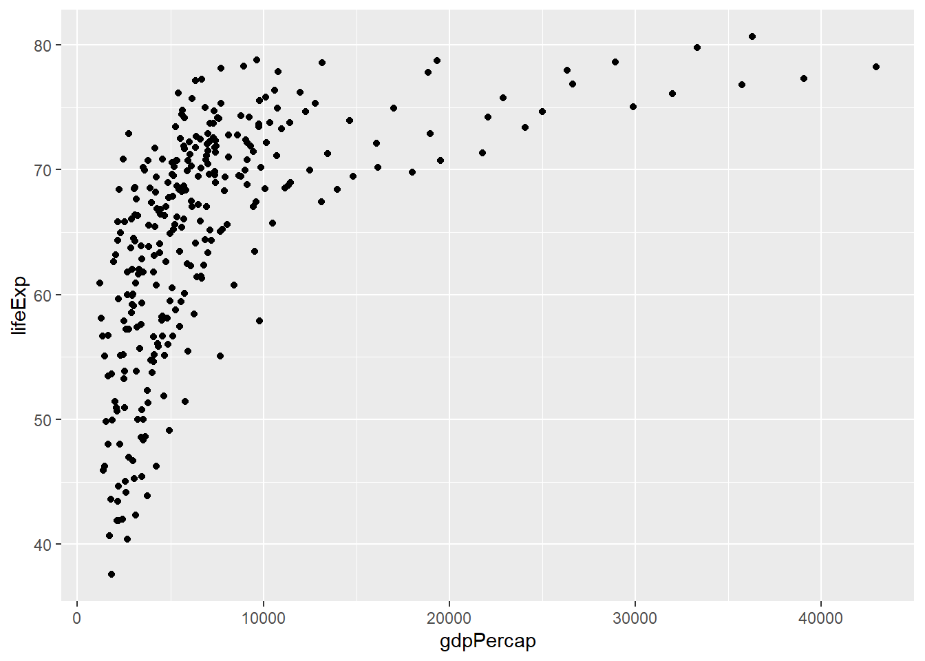 aes(x = gdpPercap, y = lifeExp))