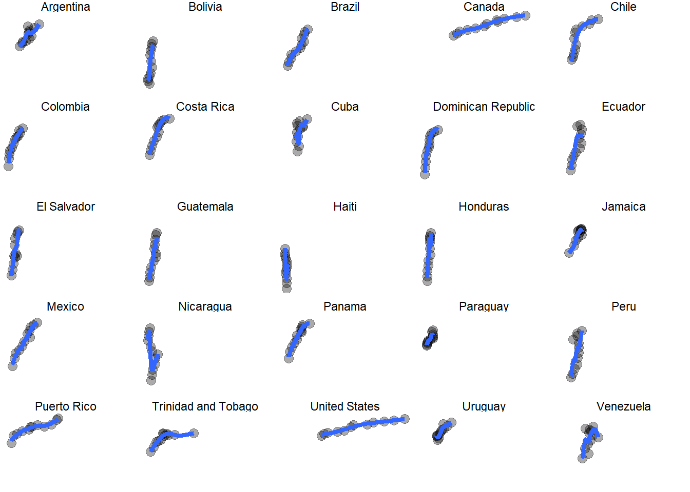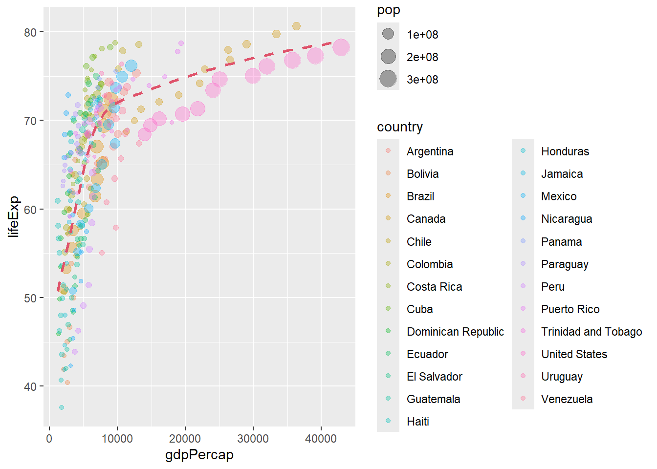 p <- ggplot(filter(gapminder, continent == "Americas"),